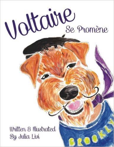 En français et en anglais simultanément , Voltaire exprime sa confusion avec ses deux langues en décrivant ses activités préférées pendant une promenade avec ses parents humains à Brooklyn. Ce livre est destiné aux fans de promenades, de chien et de Brooklyn mais surtout de la vie bilingue. Voltaire se Promène est le premier livre de la série bilingue: Voltaire: Le Chien Hipster Franco-Américaine. Vous pouvez commander le livre électronique ou en papier de Voltaire se Promène ici.